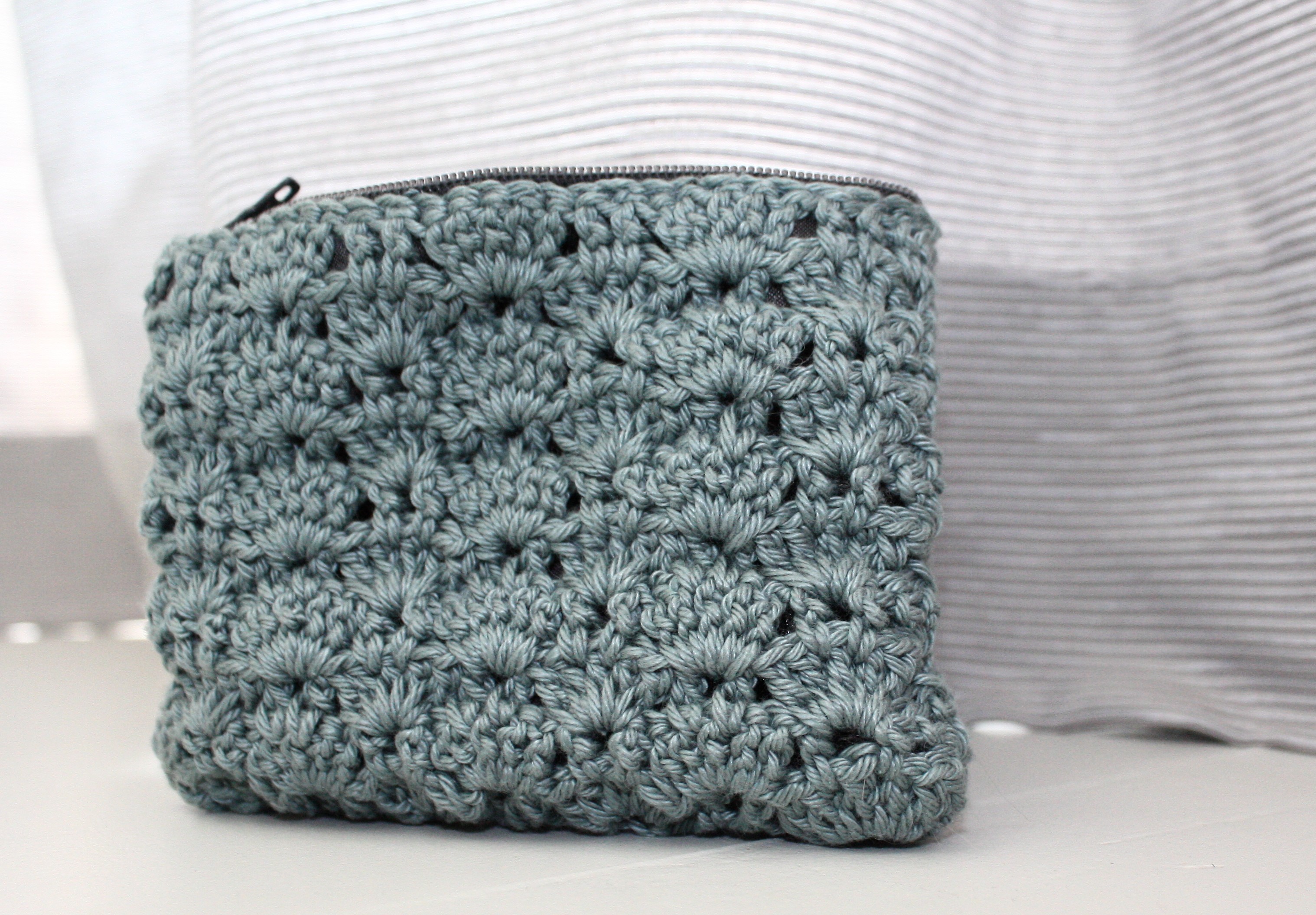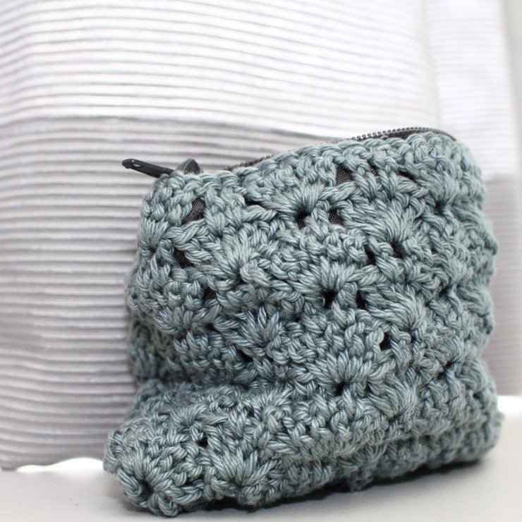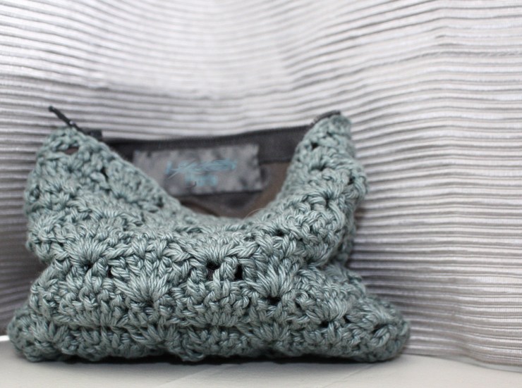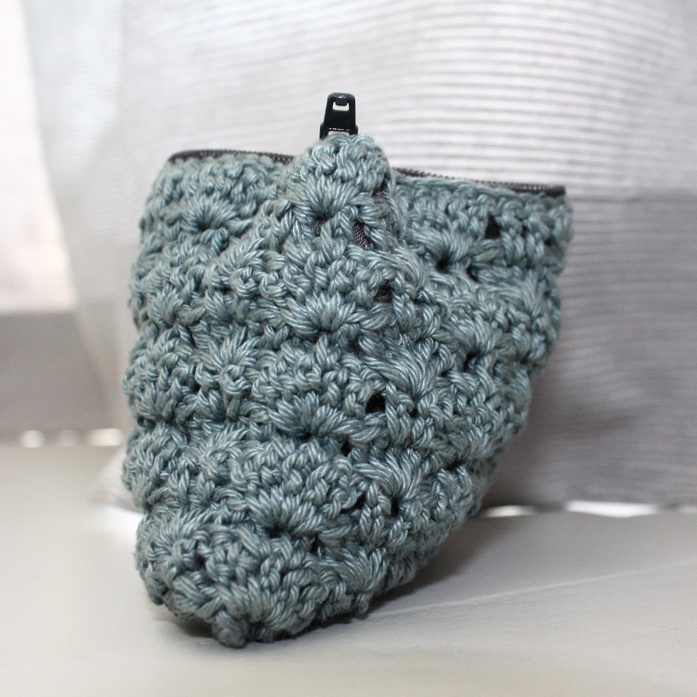 Ont été utilisés du fil Sunny de Cheval Blanc avec un crochet de 3mm, une doublure en satin grise et un zip classique.