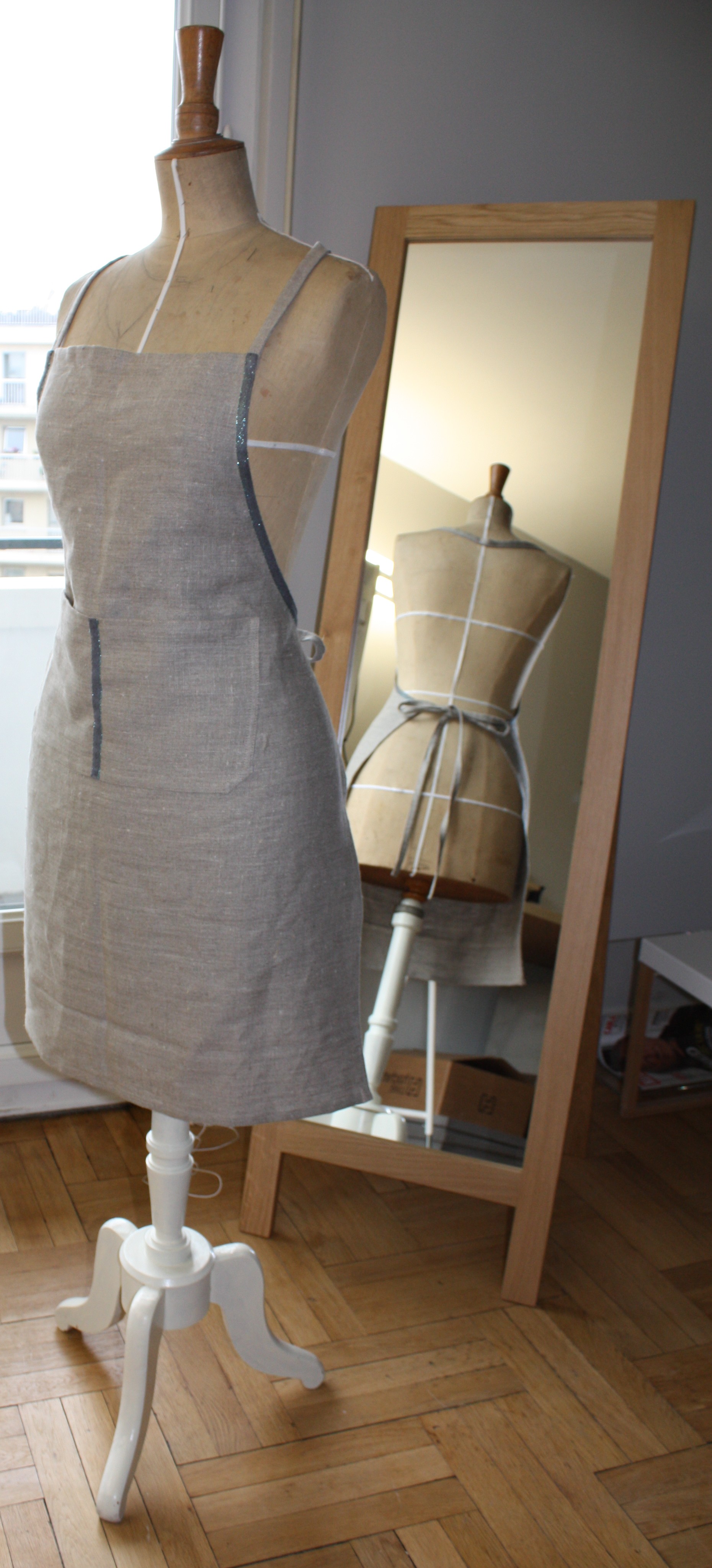 Je vous propose de faire un tablier. C’est un indispensable de la garde-robe de toute cuisinière alors autant qu’il soit joli et en accord avec votre style, non?
