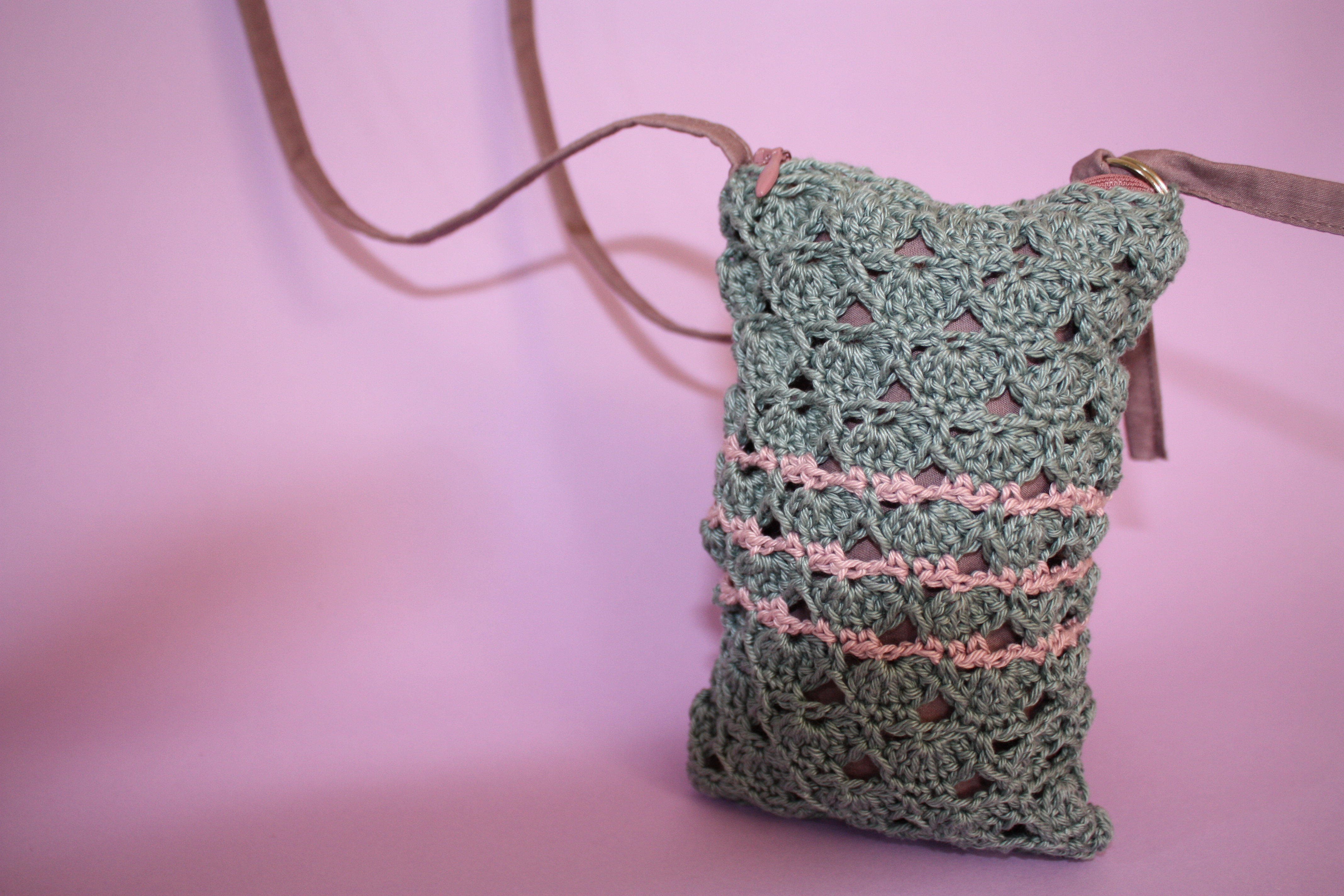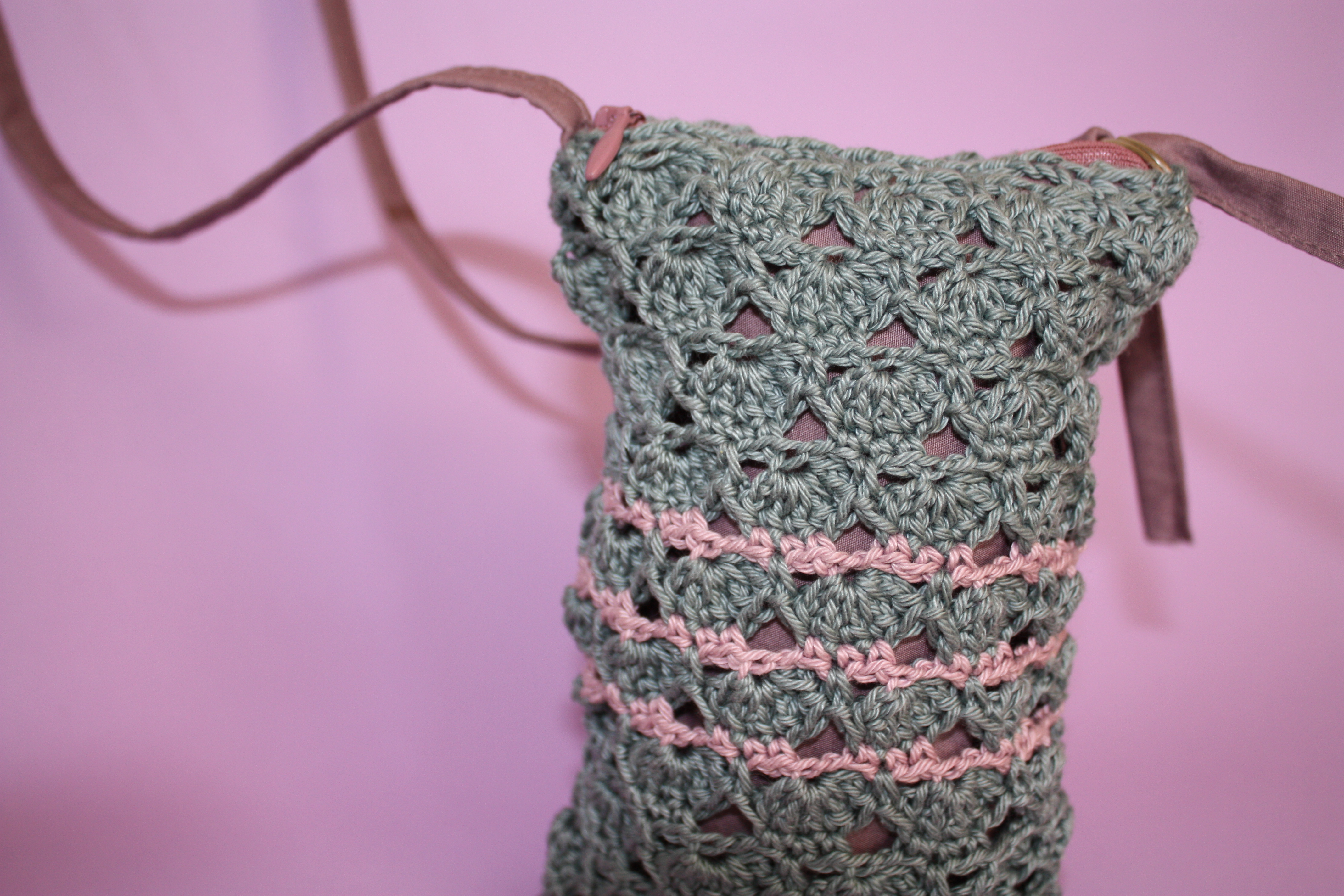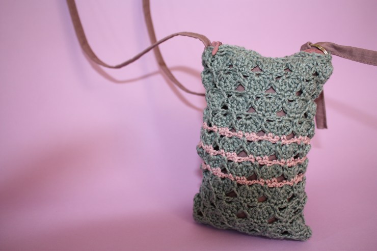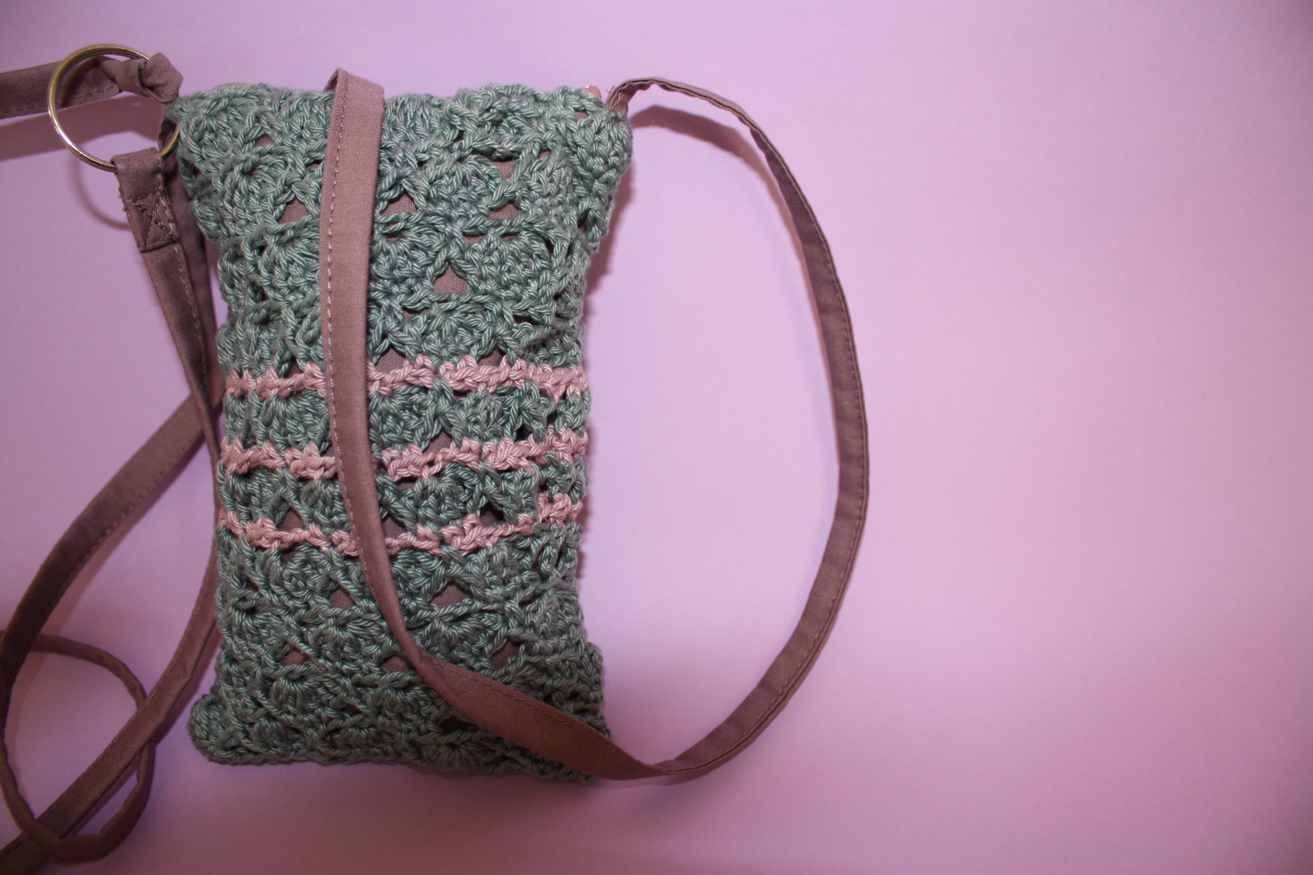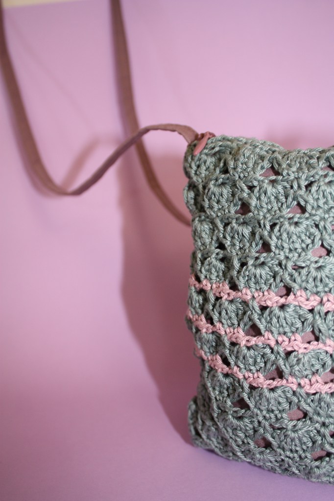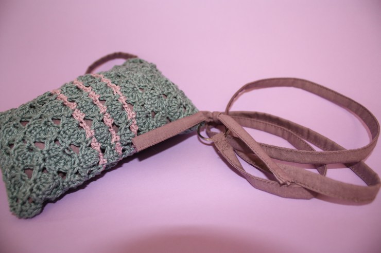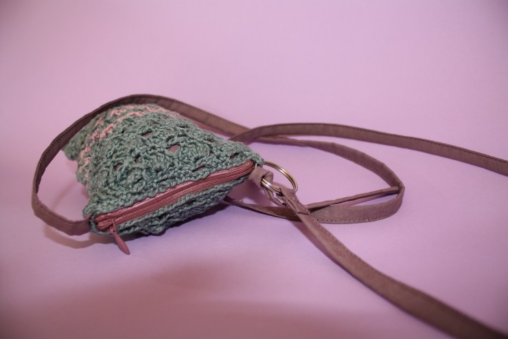 Puis, la partie crochet achevée, j’ai terminé mon ouvrage en ajoutant une doublure, une anse, un rond de porte-clef: