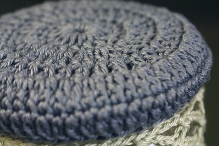 Les chapeaux de pots sont faits en crochetant des brides en rond et les habillages sont des points fantaisies trouvés dans mon livre préféré: