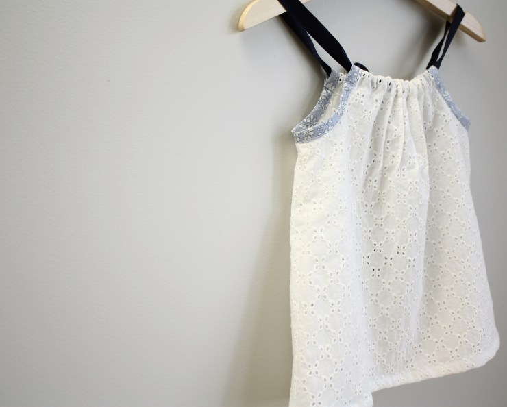 J’adore cette broderie anglaise et je trouve que ce tissu se prête bien à cette petite tenue estivale.