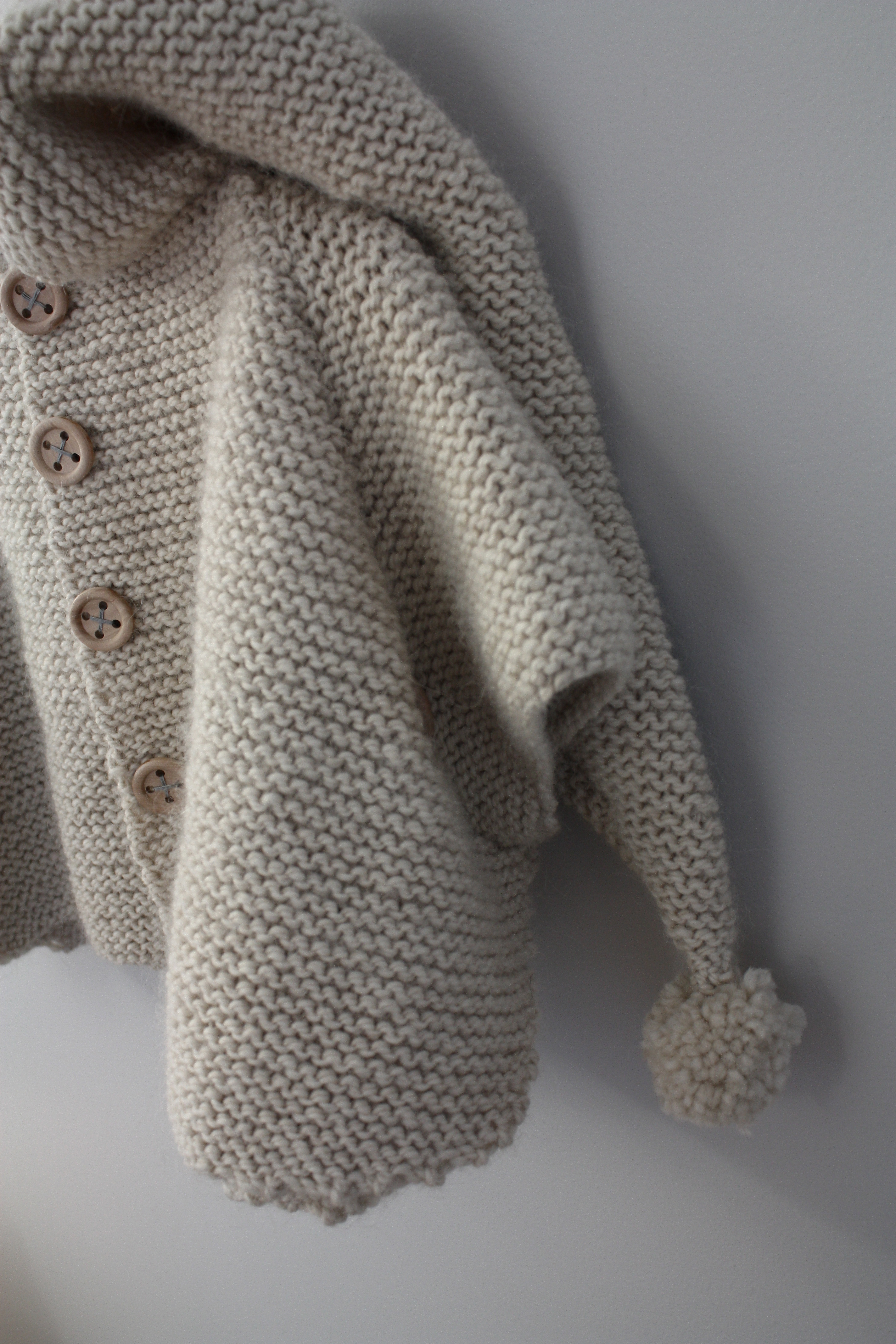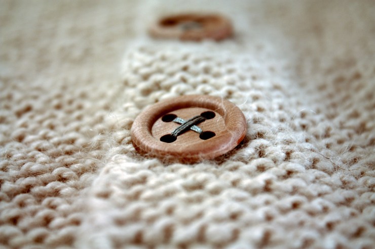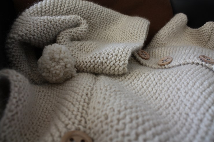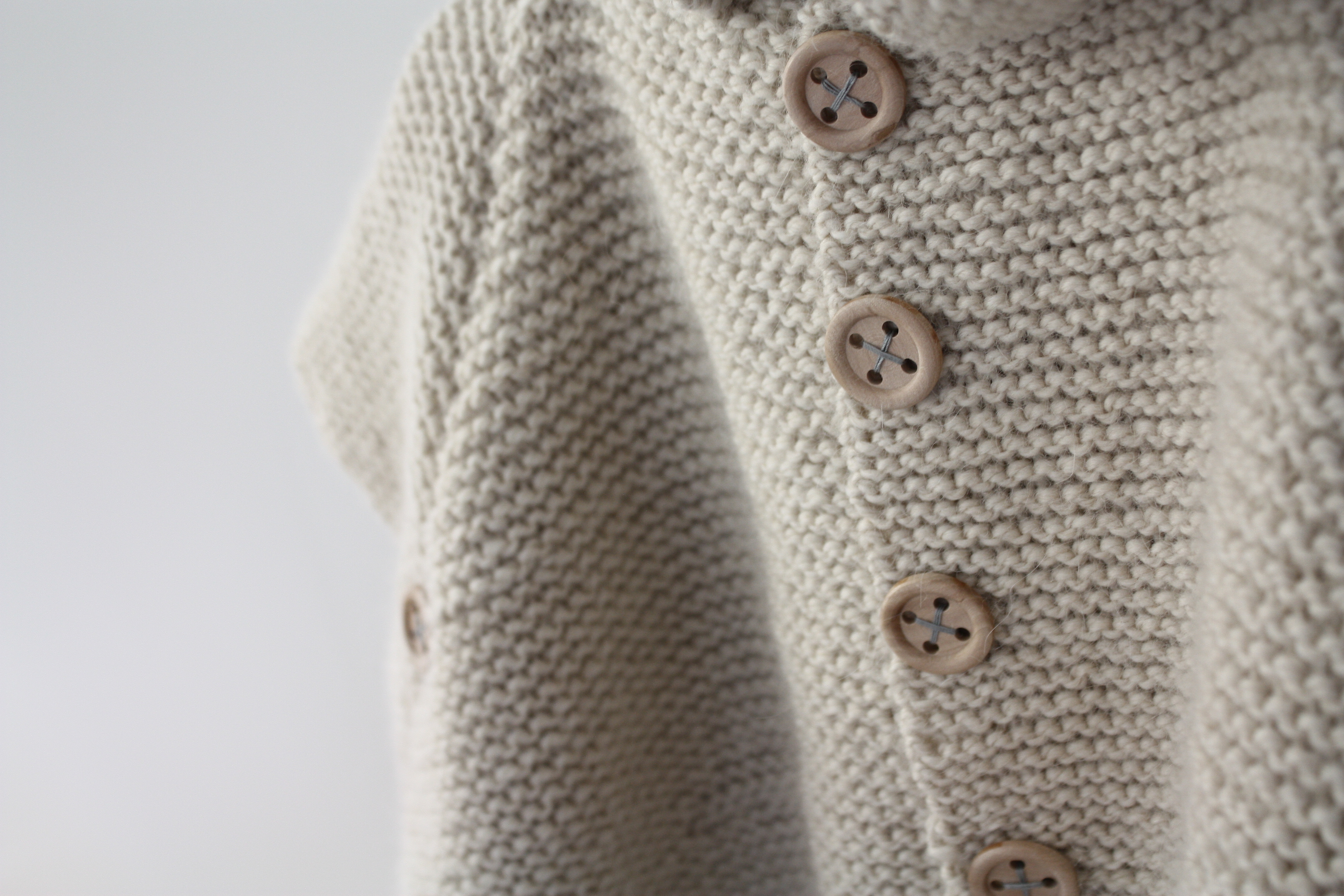 J’ai utilisé la laine préconisée par le patron: la laine Bouton d’Or Légende coloris Naturel 60% Alpaga, 40% Laine peignée et des aiguilles 4,5 ; j’ai trouvé les boutons chez l’Entrée des Fournisseurs à Paris