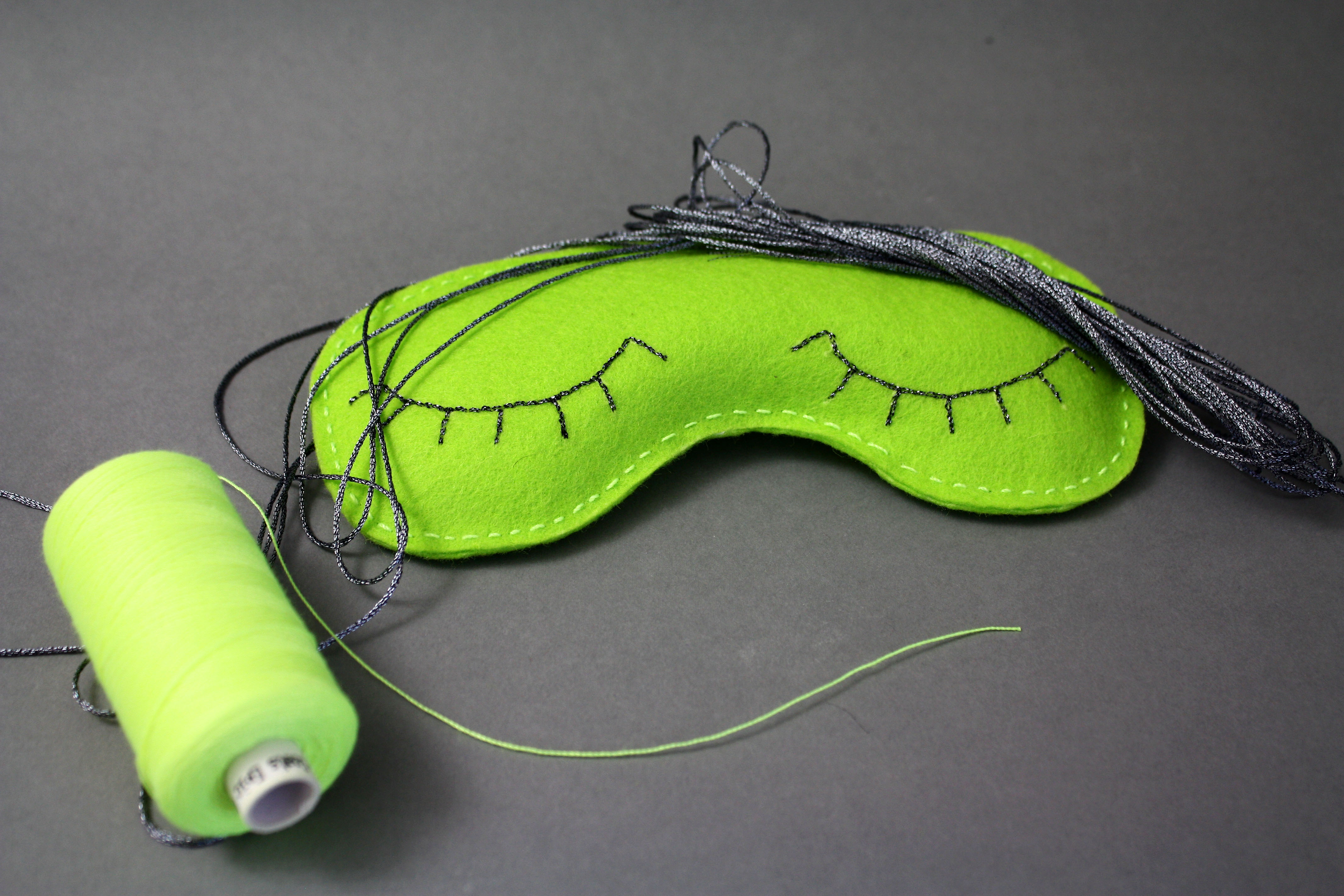 – assembler les deux épaisseurs de feutrine au point arrière en laissant une ouverture pour remplir le masque.