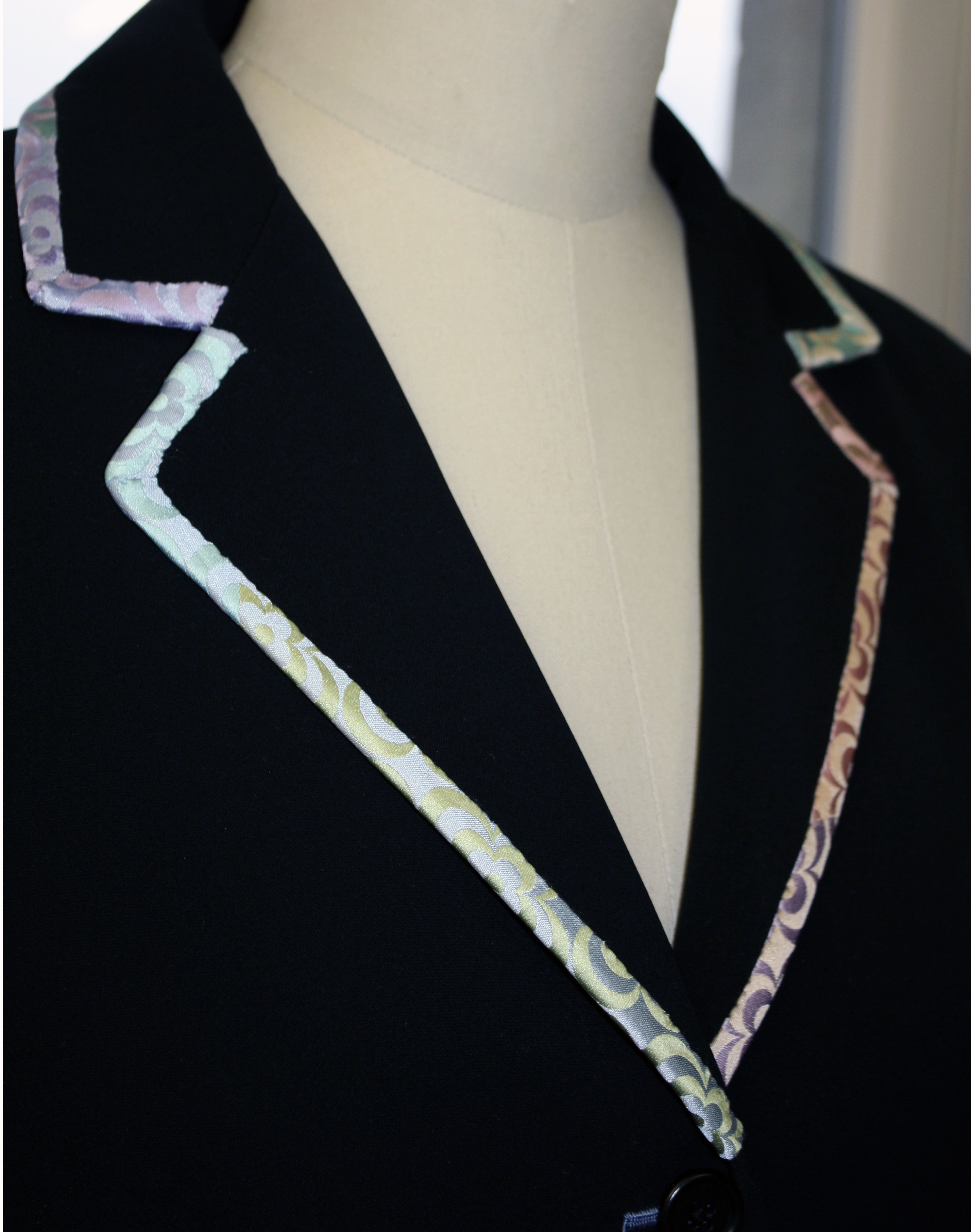 Ce projet m’a été proposé par la mère d’une amie qui voulait redonner du peps à une veste qu’elle ne portait plus depuis longtemps.