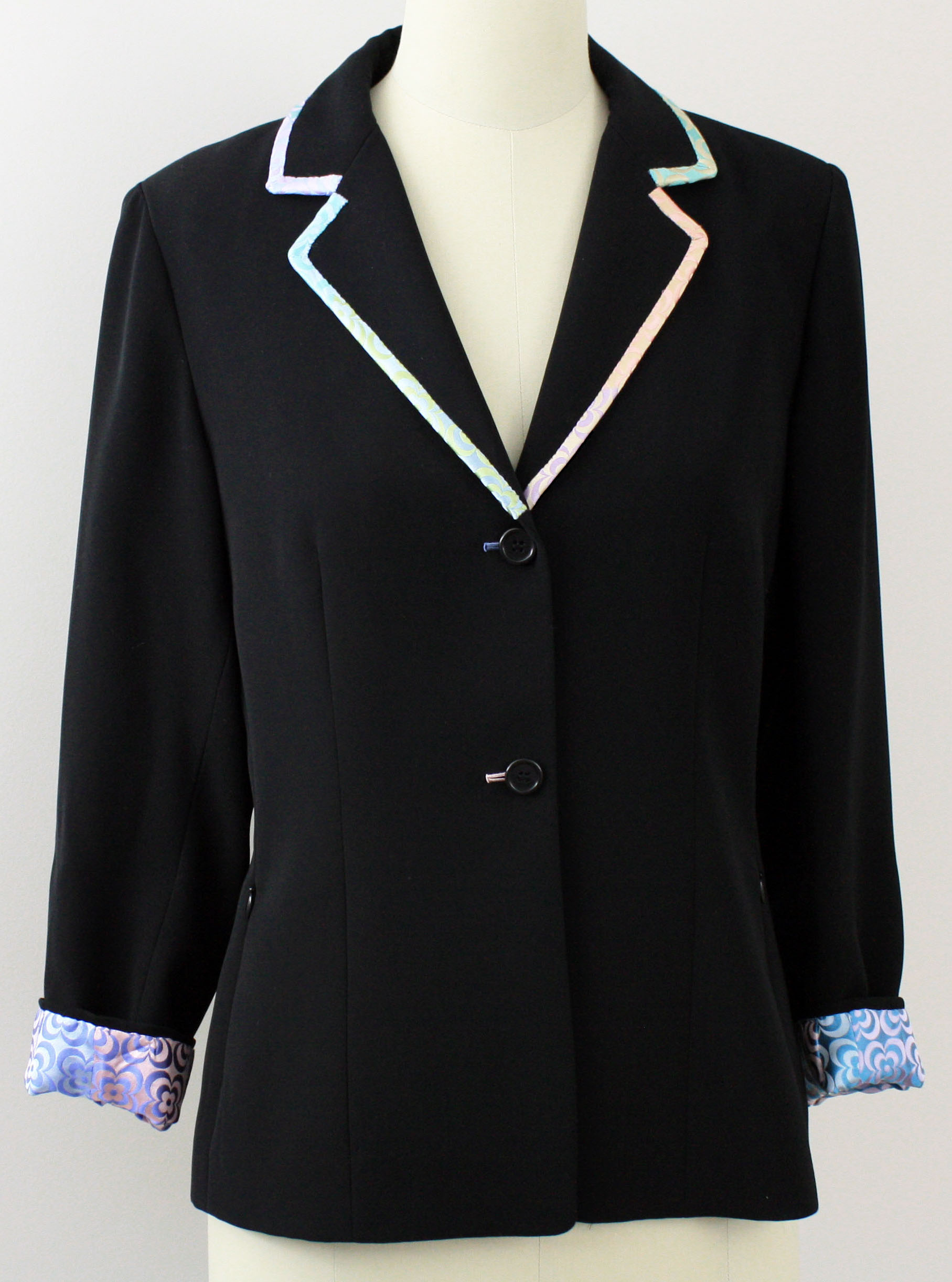 Cette veste avec ce tissus coloré en soie lui donne un côté chic, félicitation!