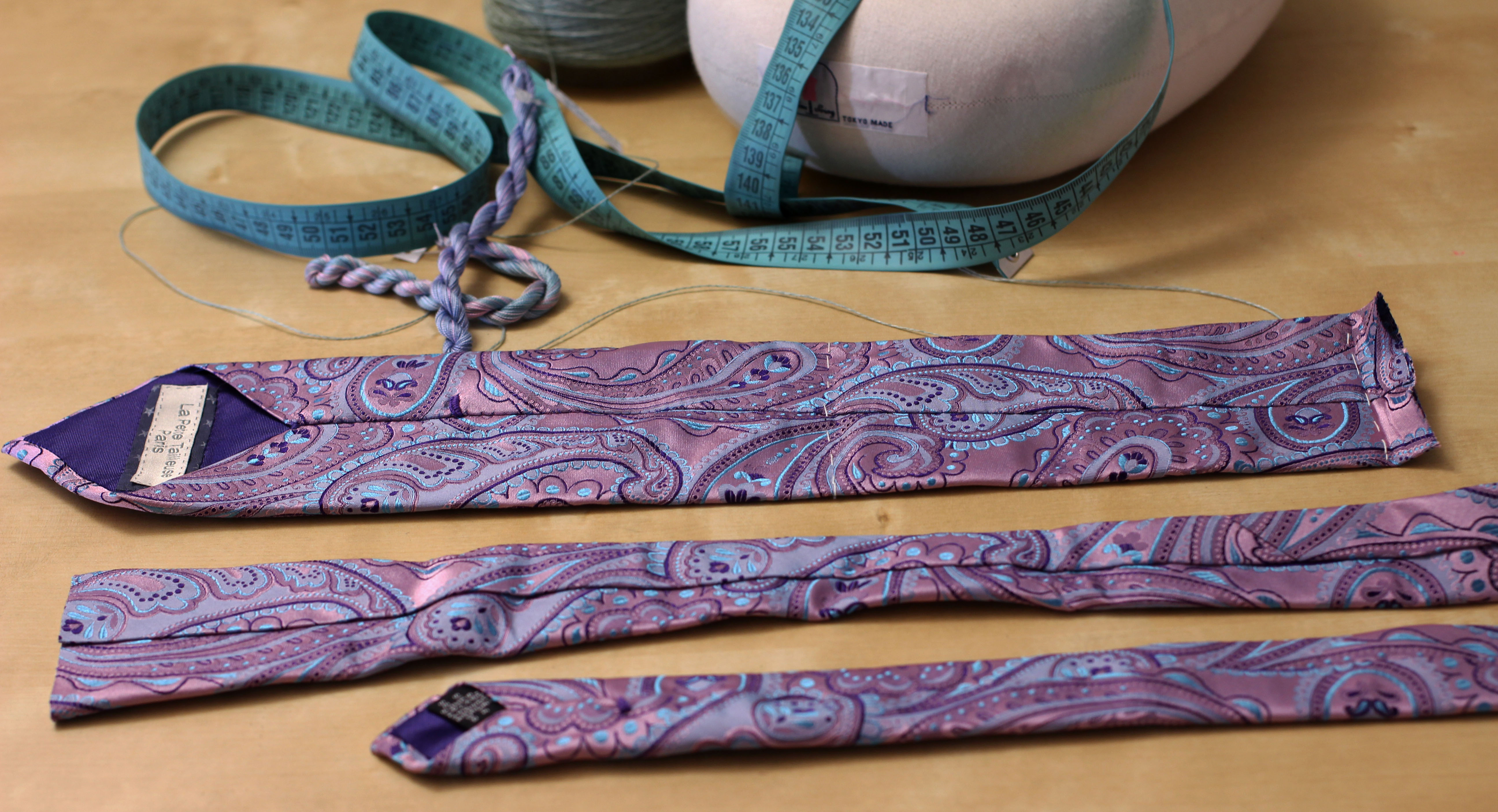 – Découdre sur l’envers les parties de la cravate qui empêcheraient de passer les lunettes à l’intérieur.