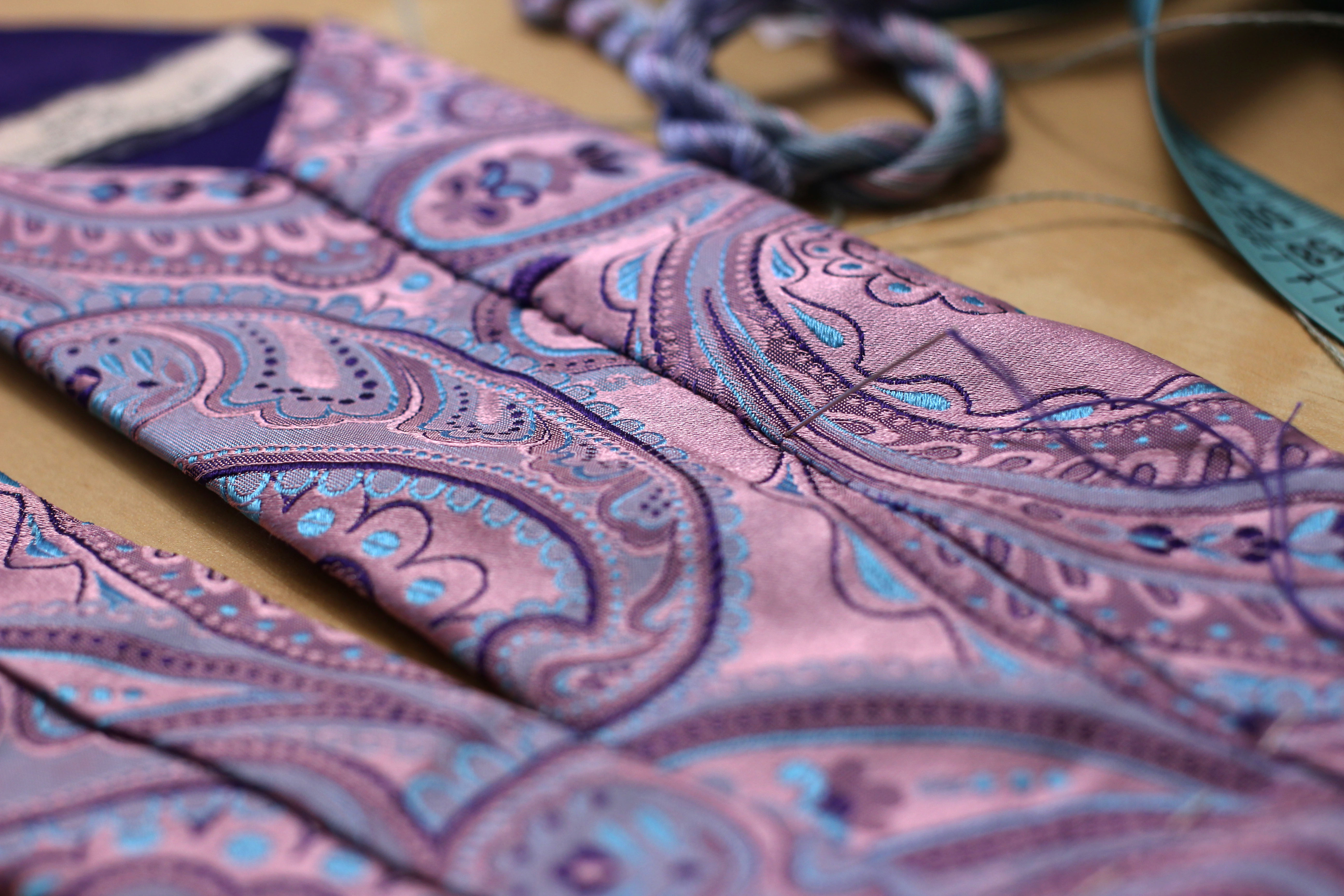 – Dégarnir la toile à cravate qui se trouve à l’intérieur sur les 1,5 cm pour éviter les épaisseurs.