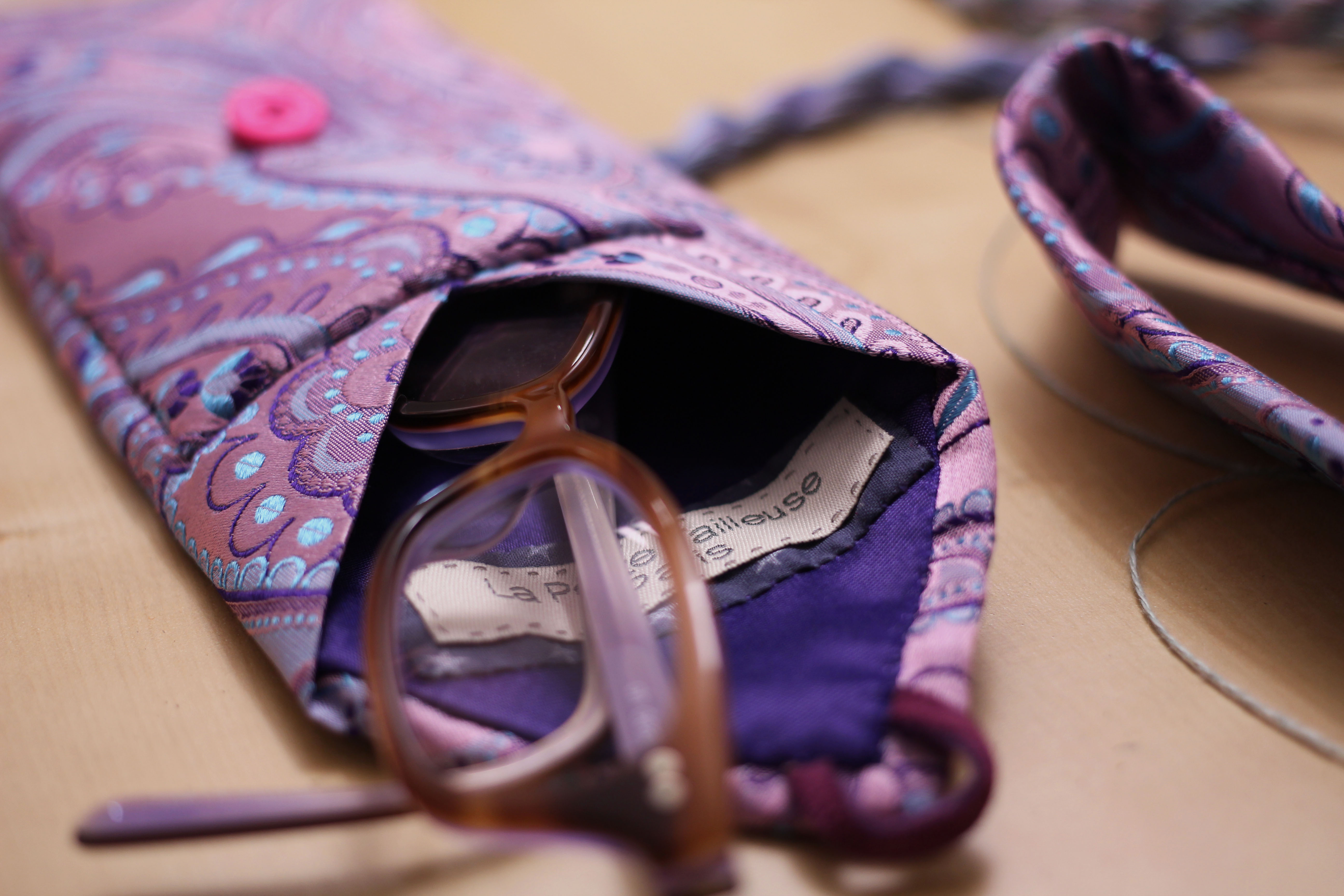 J’aime beaucoup cet étui à lunettes parce qu’il n’est pas trop volumineux pour mes petits sacs et malgré tout grâce à la toile à cravate il est assez molletonné pour protéger les lunettes.