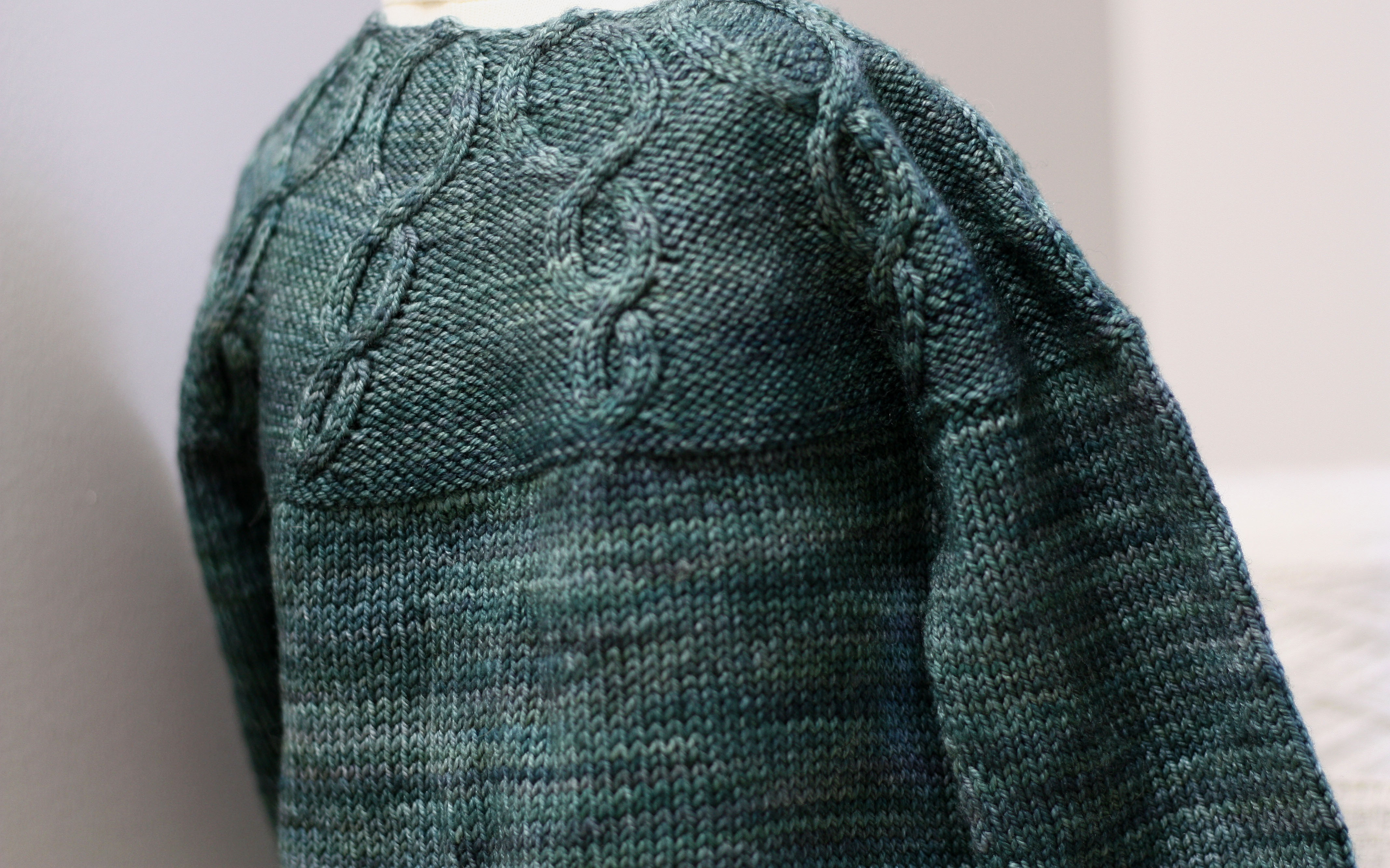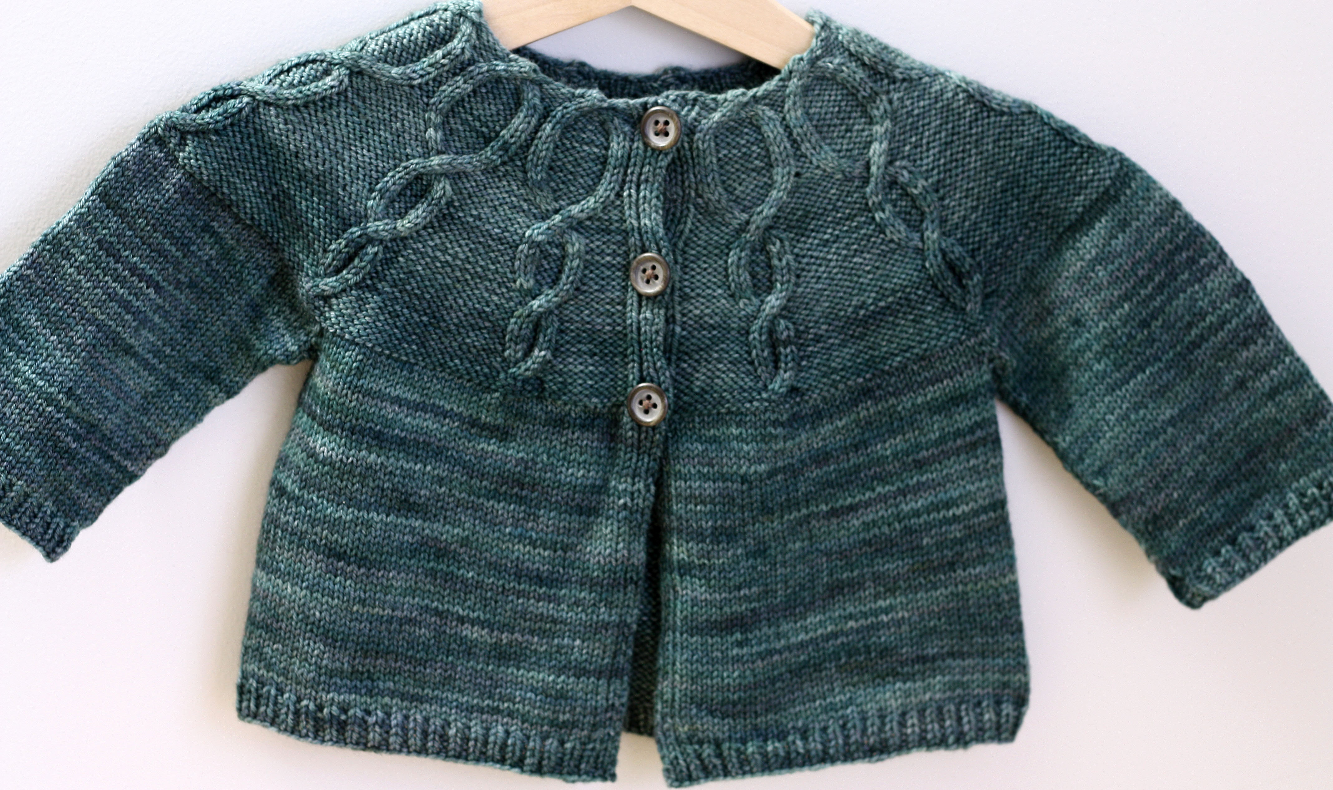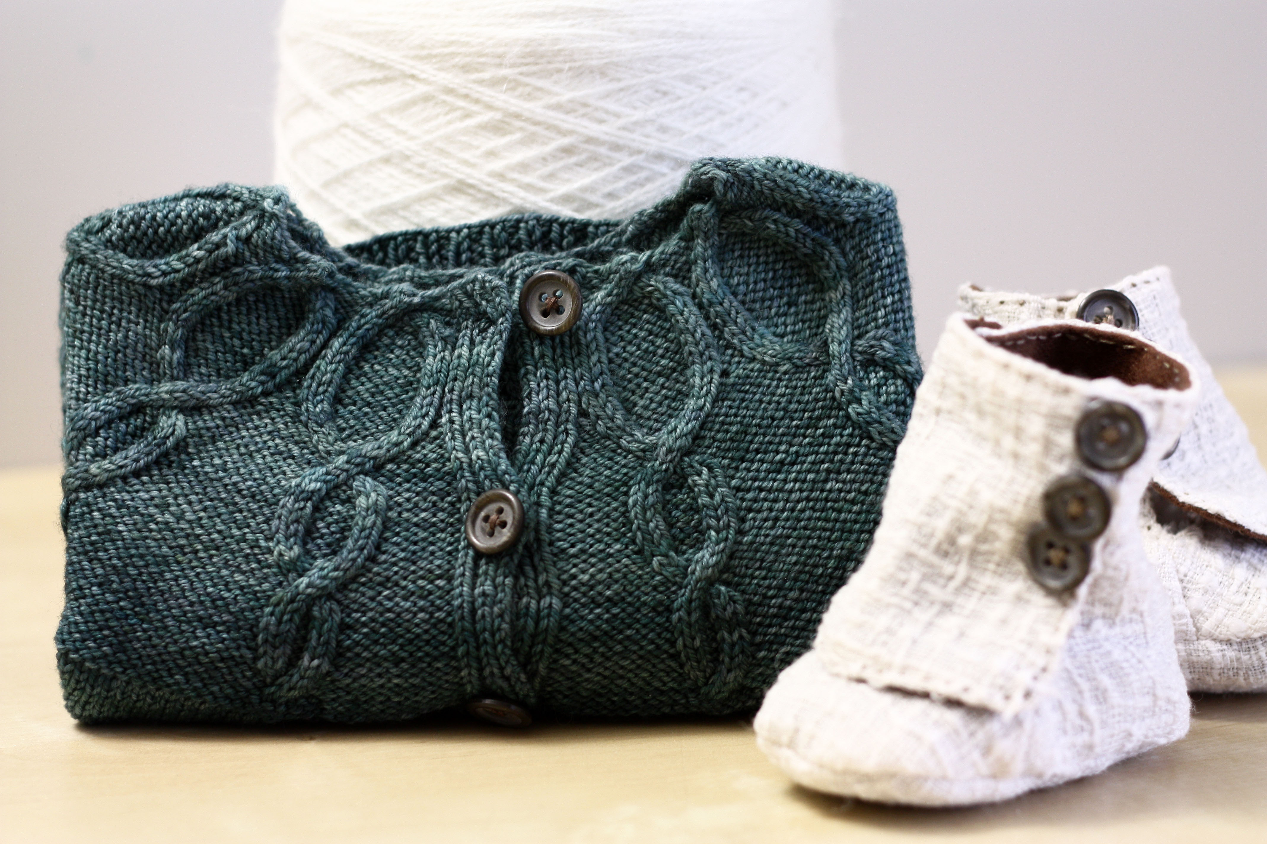 Si vous souhaitez réaliser ce modèle vous aussi, vous trouverez le patron là. J’ai utilisé la laine Malabrigo Sock coloris Aquas. Je voyais une couleur qui tirait un peu plus vers le turquoise sur la photo mais finalement j’aime beaucoup ce vert profond. Les petits boutons sont des boutons de veste d’homme de mon stock.