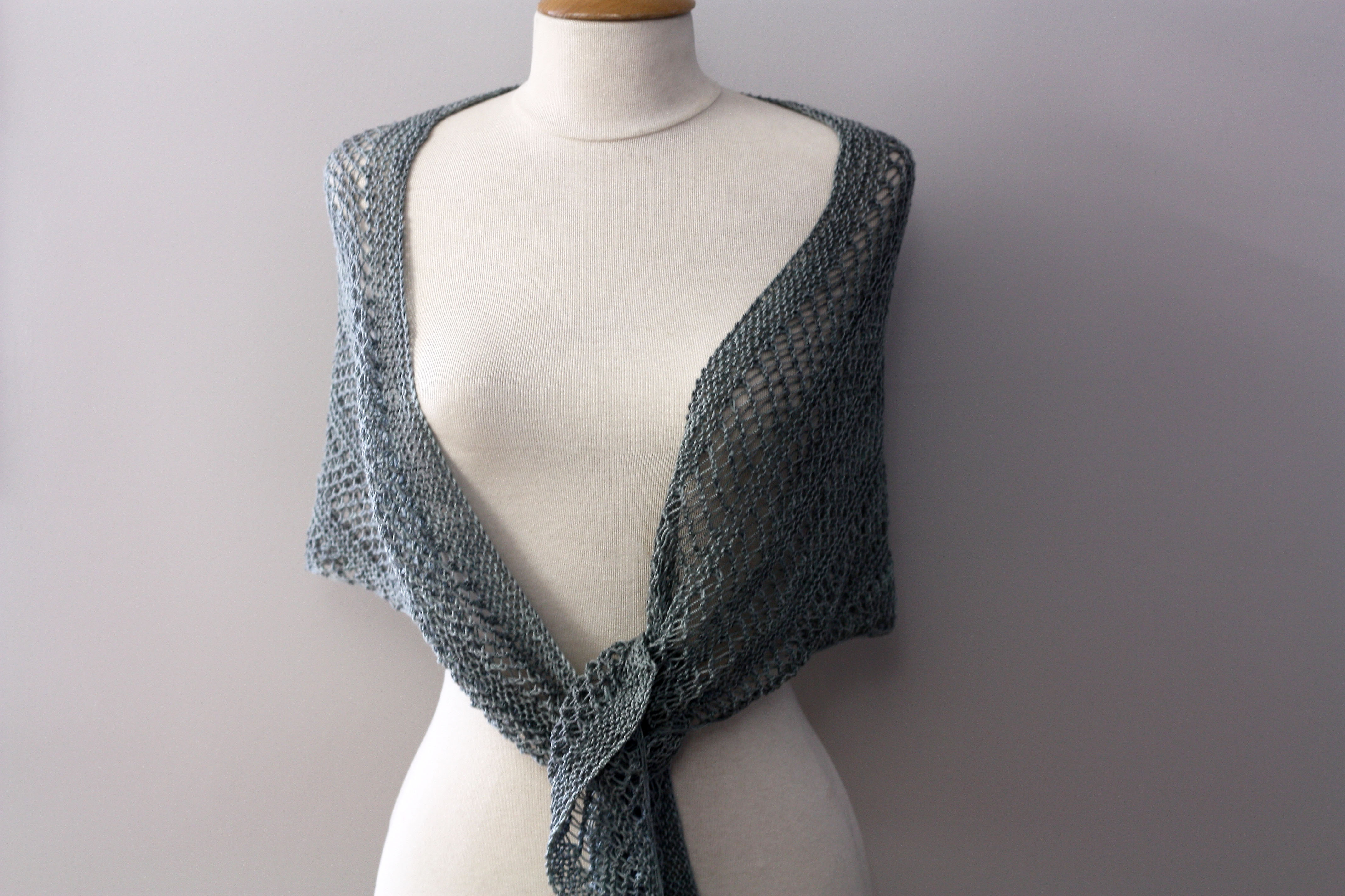 Vous trouverez le patron gratuitement sur Ravelry ici. Une copine de tricot m’avait conseillé de faire des double « yo » (pour celles qui parlent l’anglais au tricot) sur les extrémités pour éviter que le châle tire sur les bords et ça a bien marché. Merci !