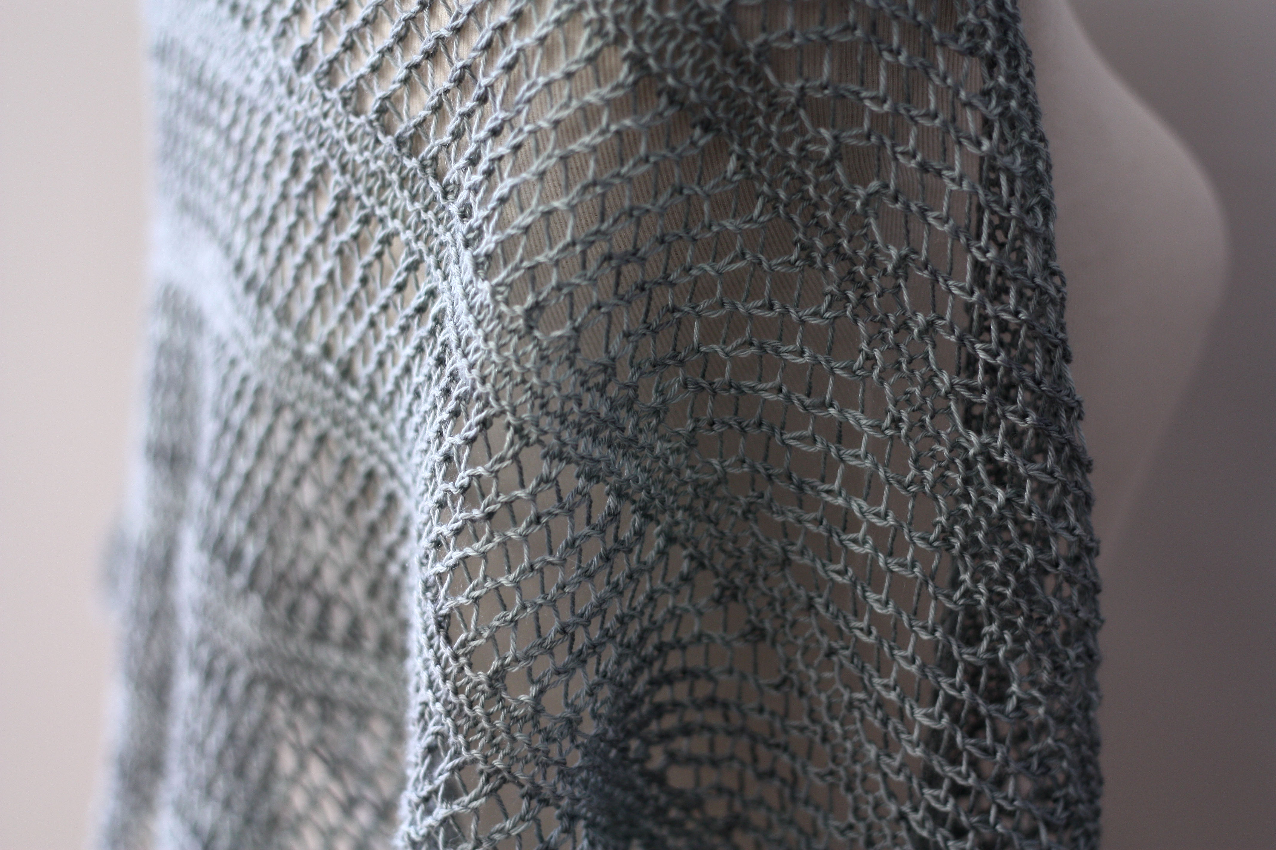 Me voilà enfin de retour avec ce châle commencé en Novembre dernier. Certains évènements m’ont bien accaparée ces derniers temps et j’ai tricoté ce châle à l’allure d’une fourmi. A peine quelques rangs par semaine quand j’arrivais à trouver une minute à moi 🙂